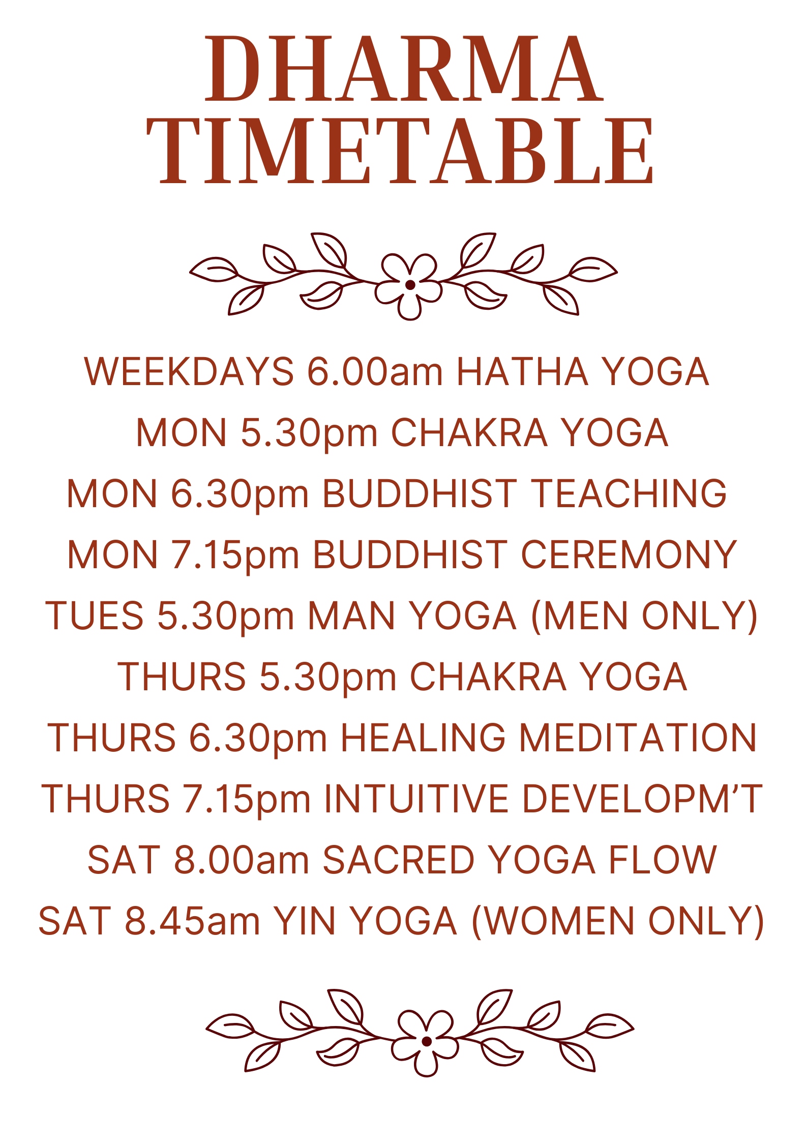 As the Dharma Centre operates within our Health store, the doors are locked once class begins.